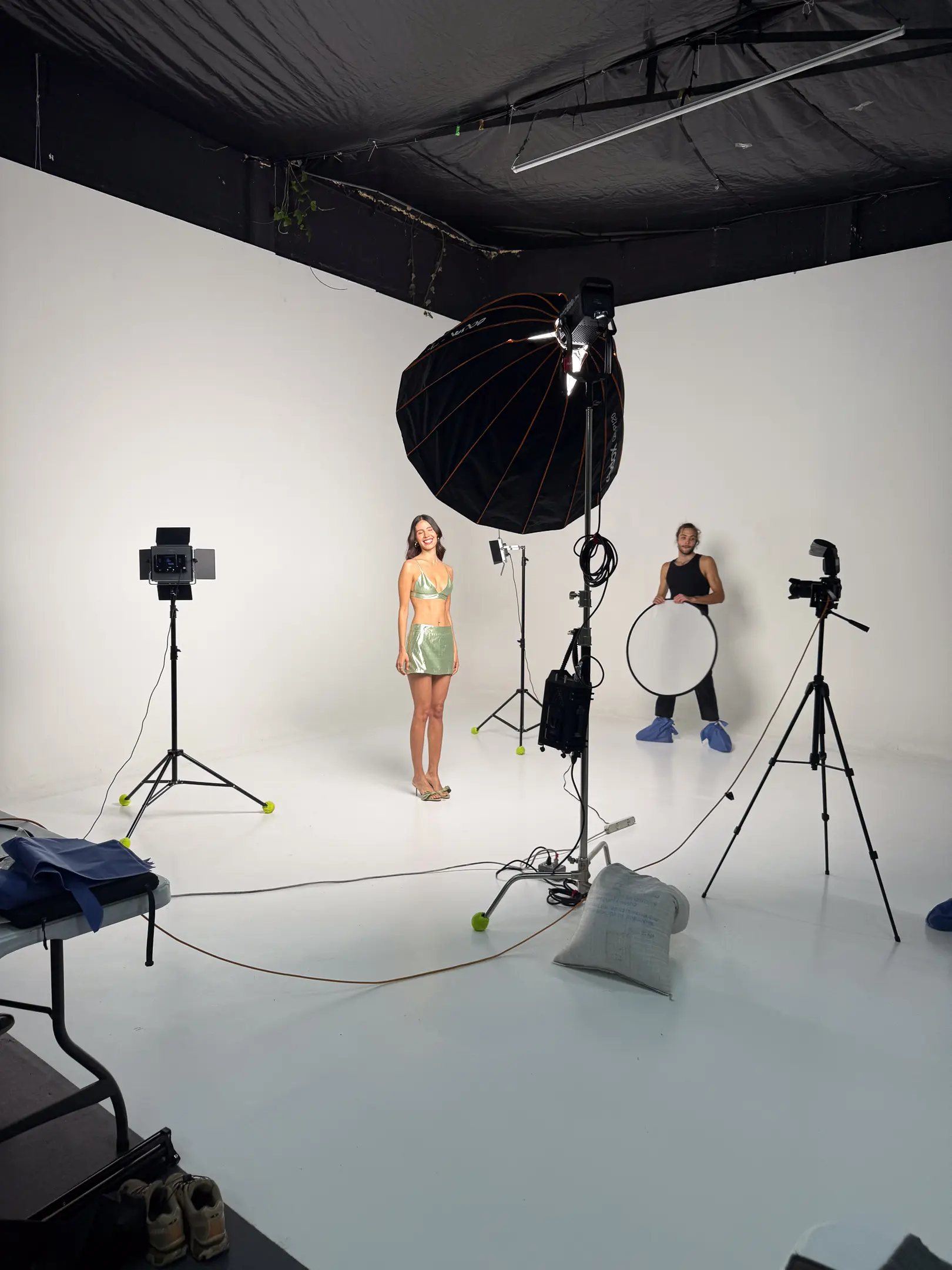 there—on set—wearing those blue fabric shoe covers meant to protect the studio’s cove. I’m staring at the lights, the photography team, half-listening to the makeup artists asking questions that sound muffled, as if I were underwater, barely able to process what they’re saying. I’m thinking about how the clothes need ironing and how these seemingly silly (but not silly at all) decisions need to be made—what model wears what, which earrings go better with which dress, what shoes pair best—and it’s all chaos. And I’m just standing there, still, slightly in shock, thinking: how in the world did I actually end up here? This was supposed to be a fantasy. This was never supposed to happen. How did this become real? And then—suddenly—the panicked bubble I was in just imploded.